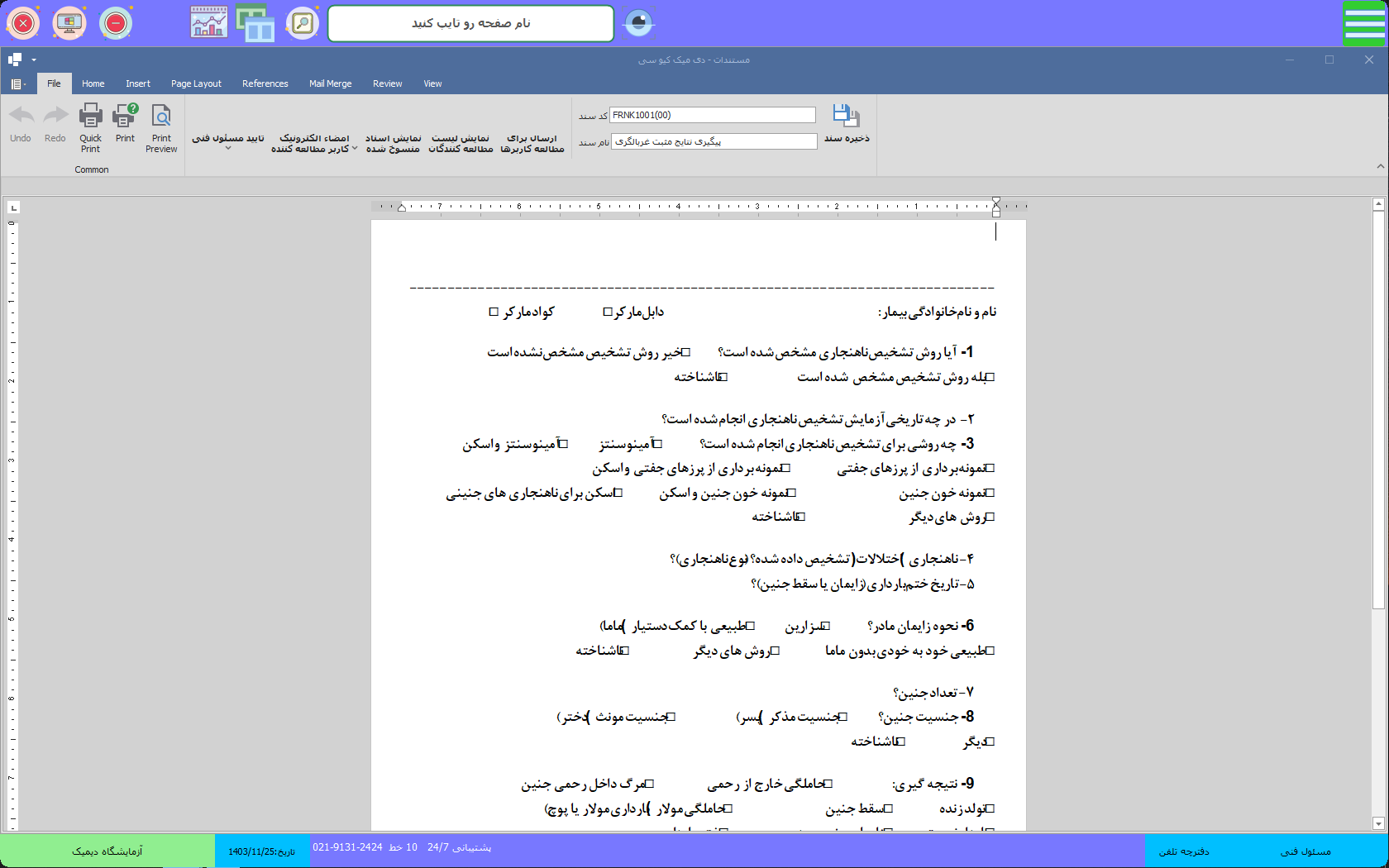 فرم های مخصوص پاتولوژی