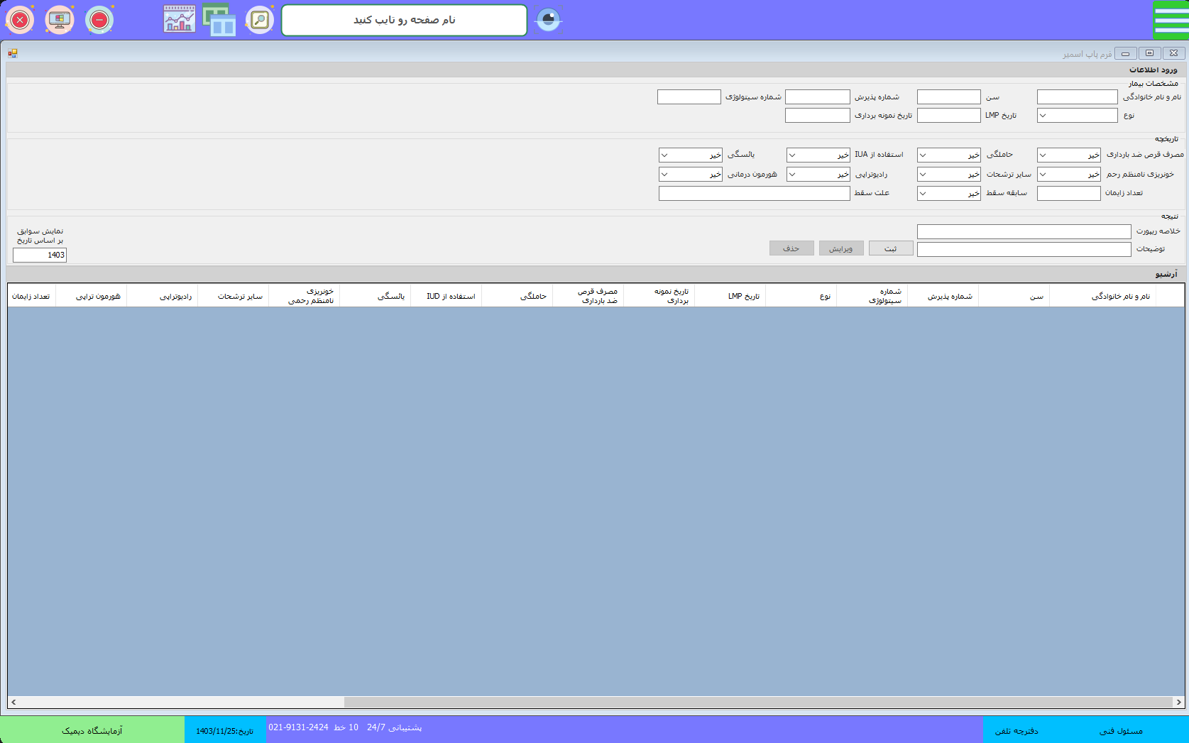 - مدیریت : فرم های مخصوص بخش پاتولوژی