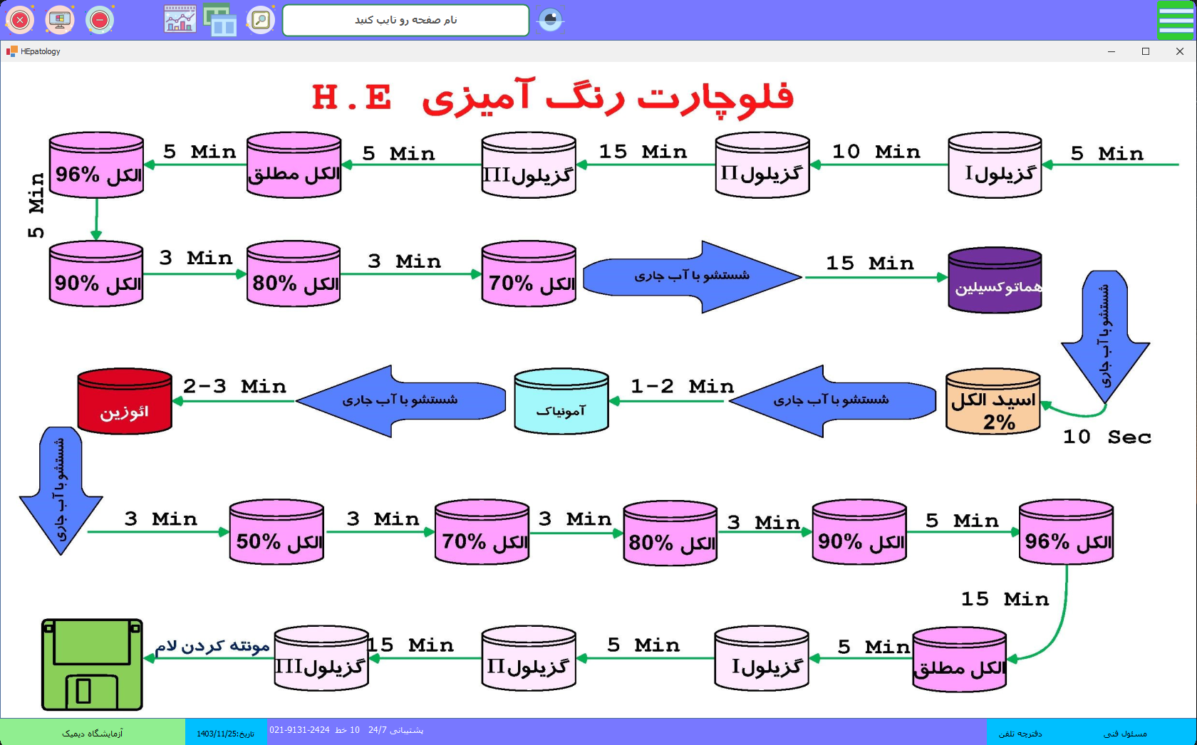 در بخش پاتولوژی امکانات متنوعی برای آزمایشگاه ها فراهم شده است . از جمله آرشیو نمونه های پاتولوژی ، کنترل دماها و کنترل کیفیت ها و هم چنین فلوچارت HE