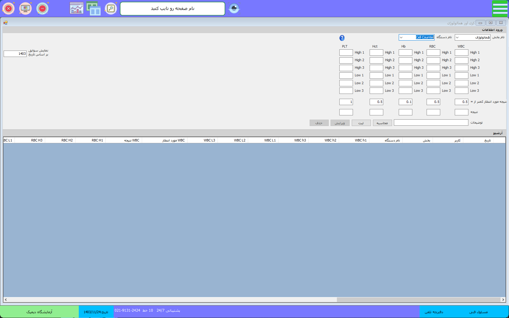 محاسبگر اندکس های آزمایشگاهی
