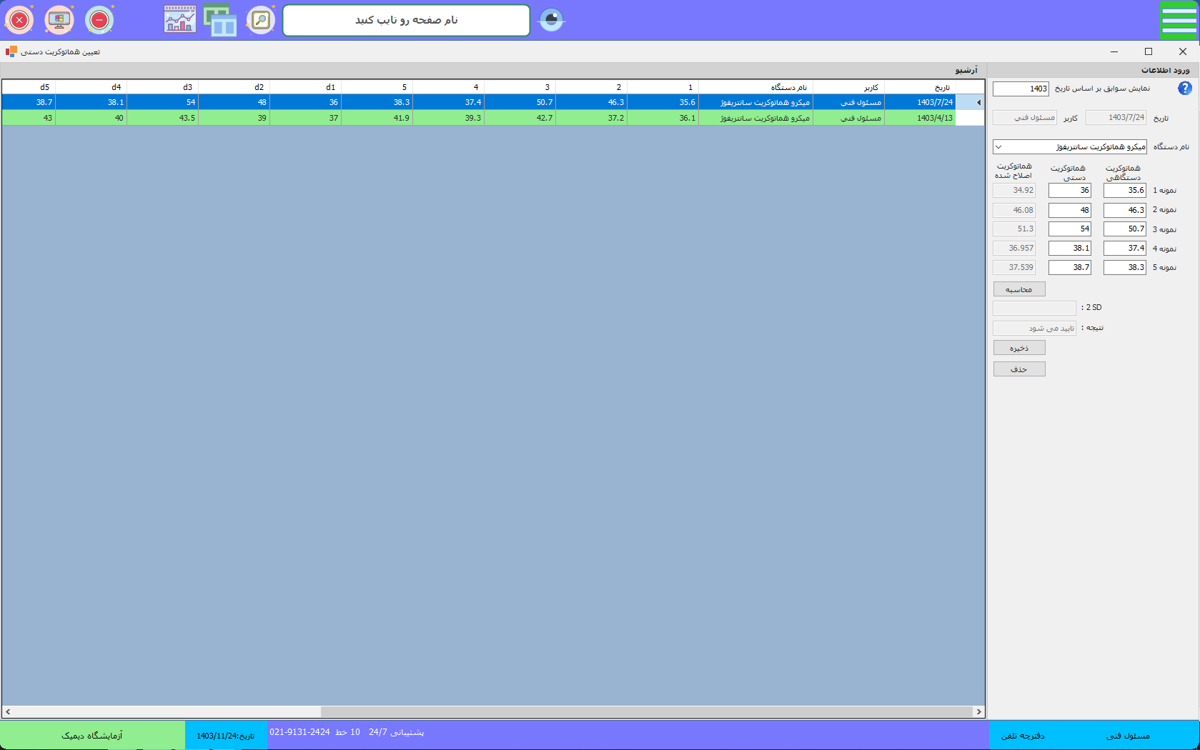 محاسبگر اندکس های آزمایشگاهی