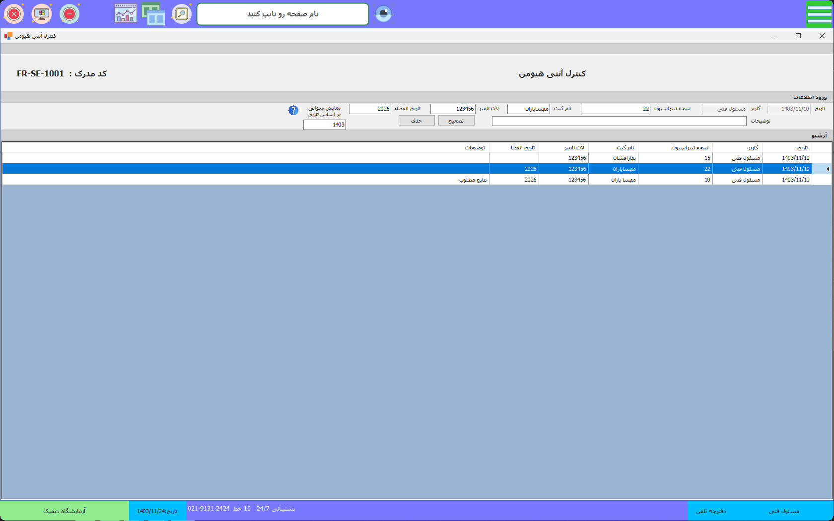 شما میتوانید در این بخش اطلاعات خود را ثبت کنید و در نهایت آرشیو اطلاعات خود را در کادر آبی رنگ پایین صفحه داشته باشید.