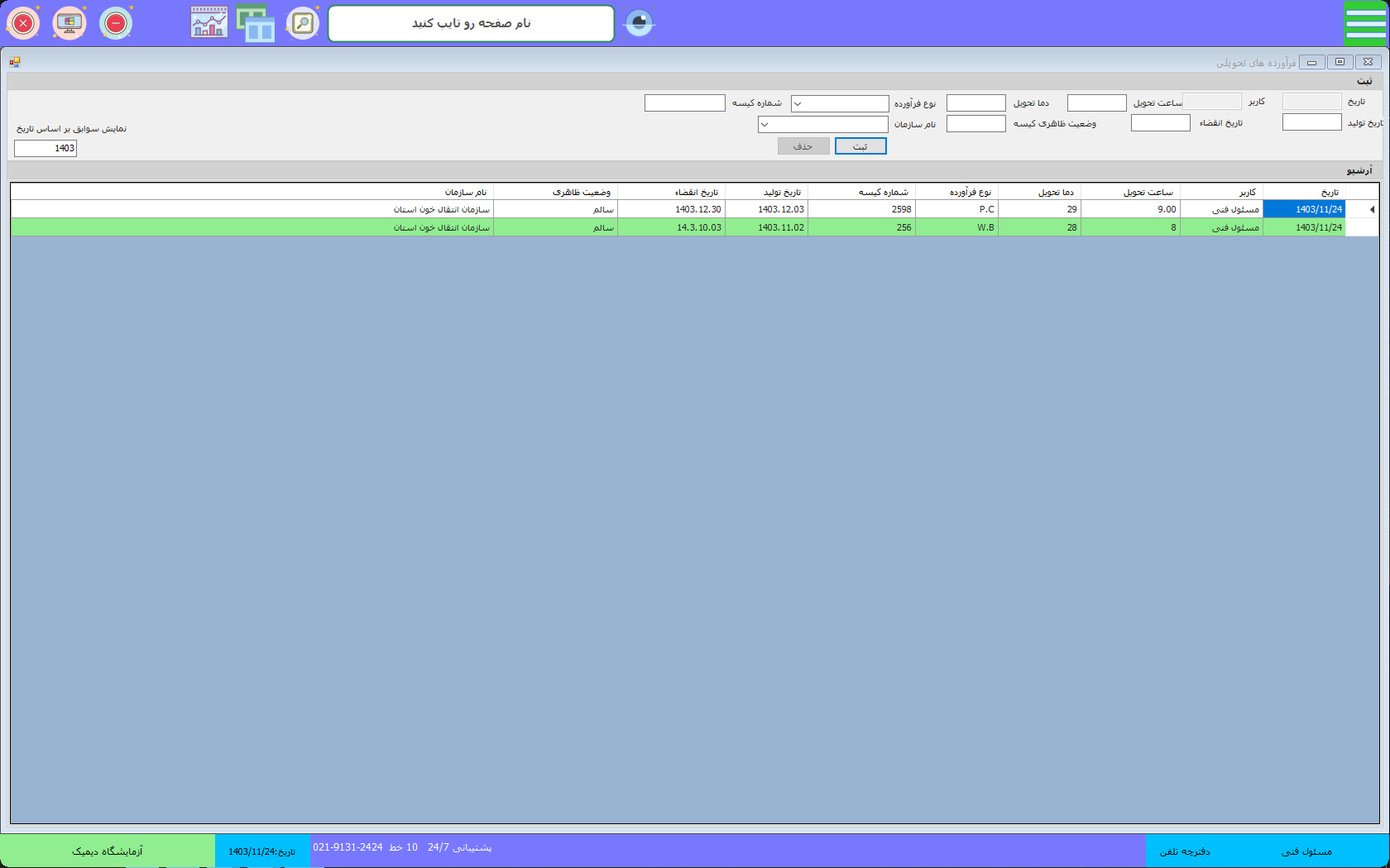 • مکان دسترسی : منو مدیریت کیفیت => بانک خون