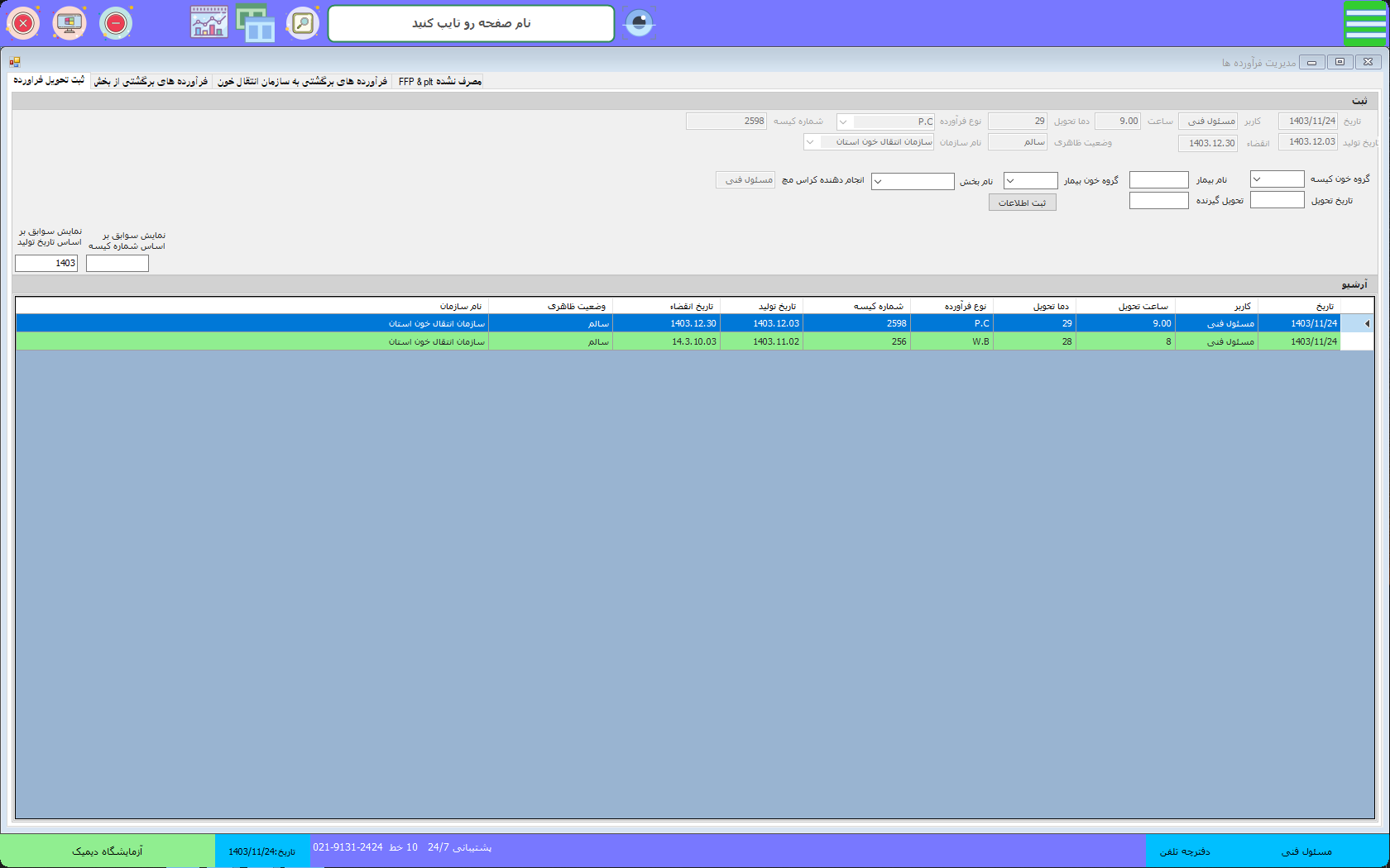 • مکان دسترسی : منو مدیریت کیفیت => بانک خون