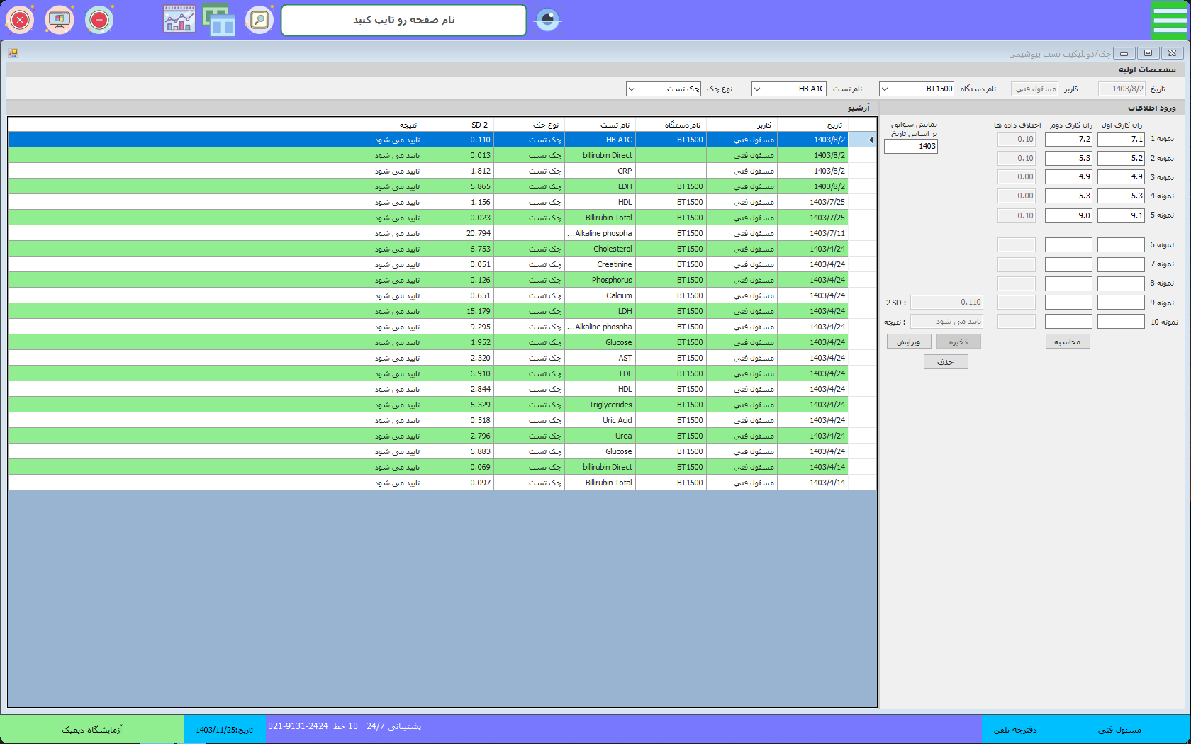 در این بخش با توجه به اینکه چک تست یا دوپلیکیت تست را انجام میدهید اطلاعات خود را وارد کنید و کامنت و نتیجه گیری نهایی را مشاهده خواهید کرد.
