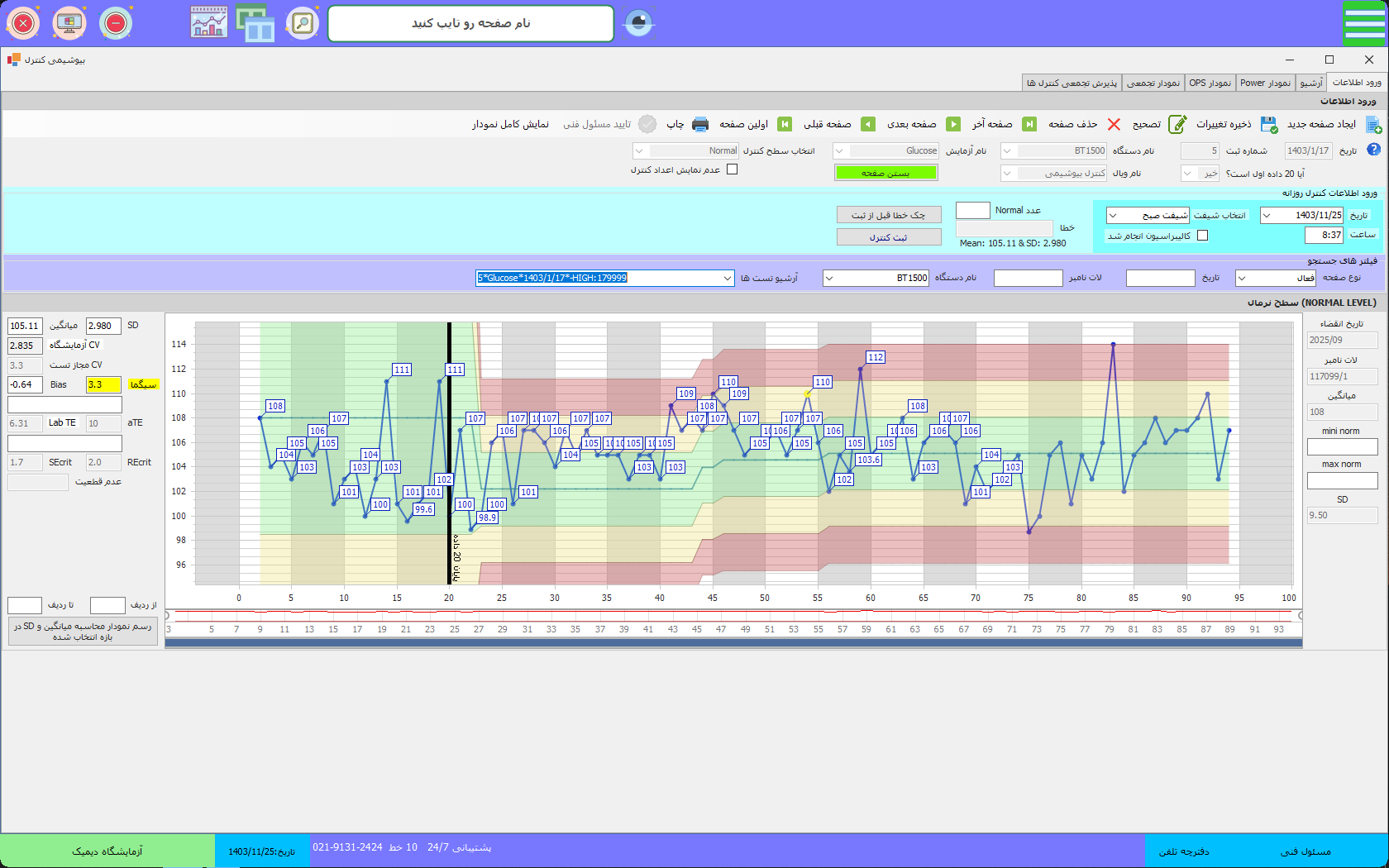 - قابلیت چاپ نمودارهای کنترل کیفیت روزانه و آرشیو اطلاعات آزمایشگاه