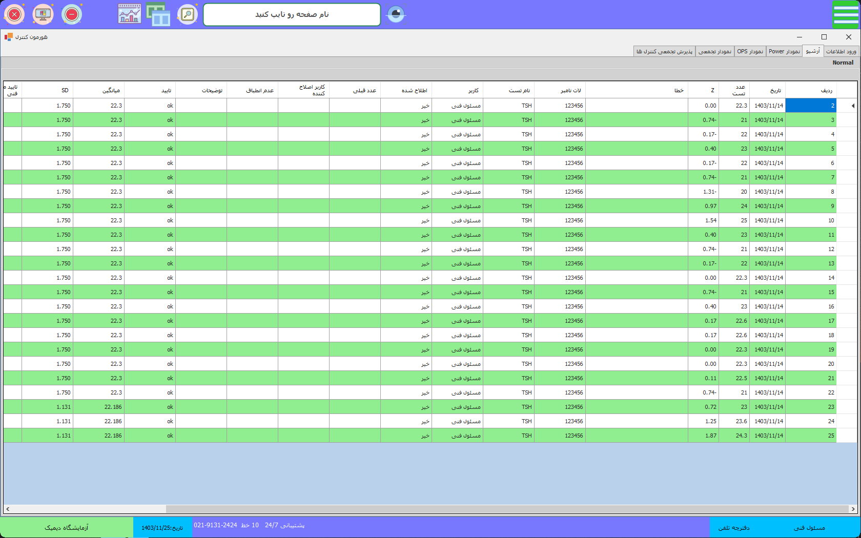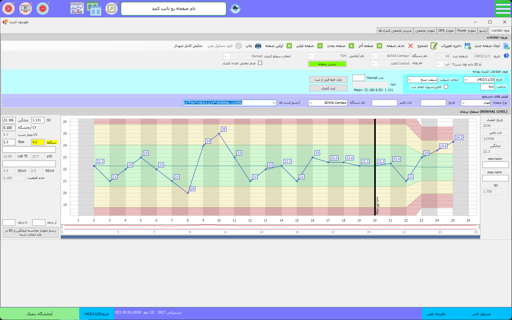 در پارت دوم آموزش ما کنترل کیفیت روزانه در بخش های هماتولوژی ، بیوشیمی، هورمون و انعقاد را خواهیم داشت. کنترل کیفیت روزانه شامل خون کنترل هماتولوژی، سرم کنترل بیوشیمی، سرم کنترل هورمون و انعقاد پلاسما کنترل می باشد. از صفحه ی سرم کنترل بیوشیمی وارد شده و روی ایجاد صفحه ی جدید کلیک میکنیم. نام دستگاه ، نام آزمایش، انتخاب سطح کنترل ، بیست داده ی اول و نام ویال را وارد میکنیم. در مرحله ی بعد اطلاعات سطح نرمال را از داخل بروشور کیت وارد میکنیم. لطفا اطلاعات تاریخ انقضا، لات نامبر، میانگین، mini norm ، max norm را وارد میکنیم و در نهایت نرم فزار میزان SD را برای ما محاسبه خواهد کرد. در نهایت اطلاعات خود را ذخیره خواهیم کرد. به منظور رفرش شدن صفحه ، صفحه را یه بار بسته و مجددا باز میکنیم . از فیلتر نام دستگاه ، دستگاه مربوطه را انتخاب میکنیم و از فیلتر نام تست، تست مربوطه را انتخاب میکنیم. بیست دیتای اول خود را در سمت چپ صفحه وارد میکنیم . بعد از پایان اطلاعات وارد شده ، اطلاعات آزمایشگاه شامل مینگین، SD ، CV آزمایشگاه و CV مجاز تست ، Bias، سیگما و دیگر اطلاعات قابل مشاهده خواهد بود. شما در صفحه آرشیو، اطلاعات بایگانی شده ی خود را میتوانید مشاهده کنید. اطلاعاتی که دارای خطا هستند از این قسمت قابلیت اصلاح را دارند. نمودارهای مختلفی مانند power ، ops و تجمعی نیز برای شما رسم خواهد شد. شما به قبلیت هایی مانند تایید مسیول فنی، چاپ صفحات، حذف صفحه ، تصحیح صفحه نیز دسترسی خواهید داشت.