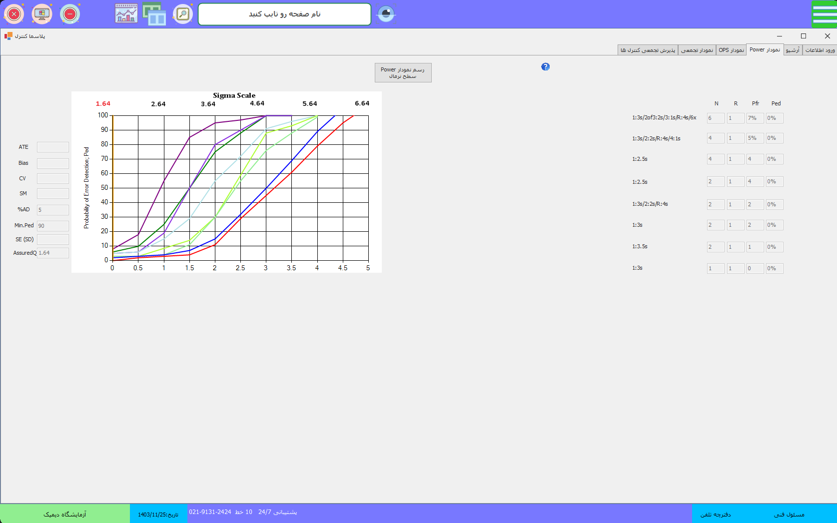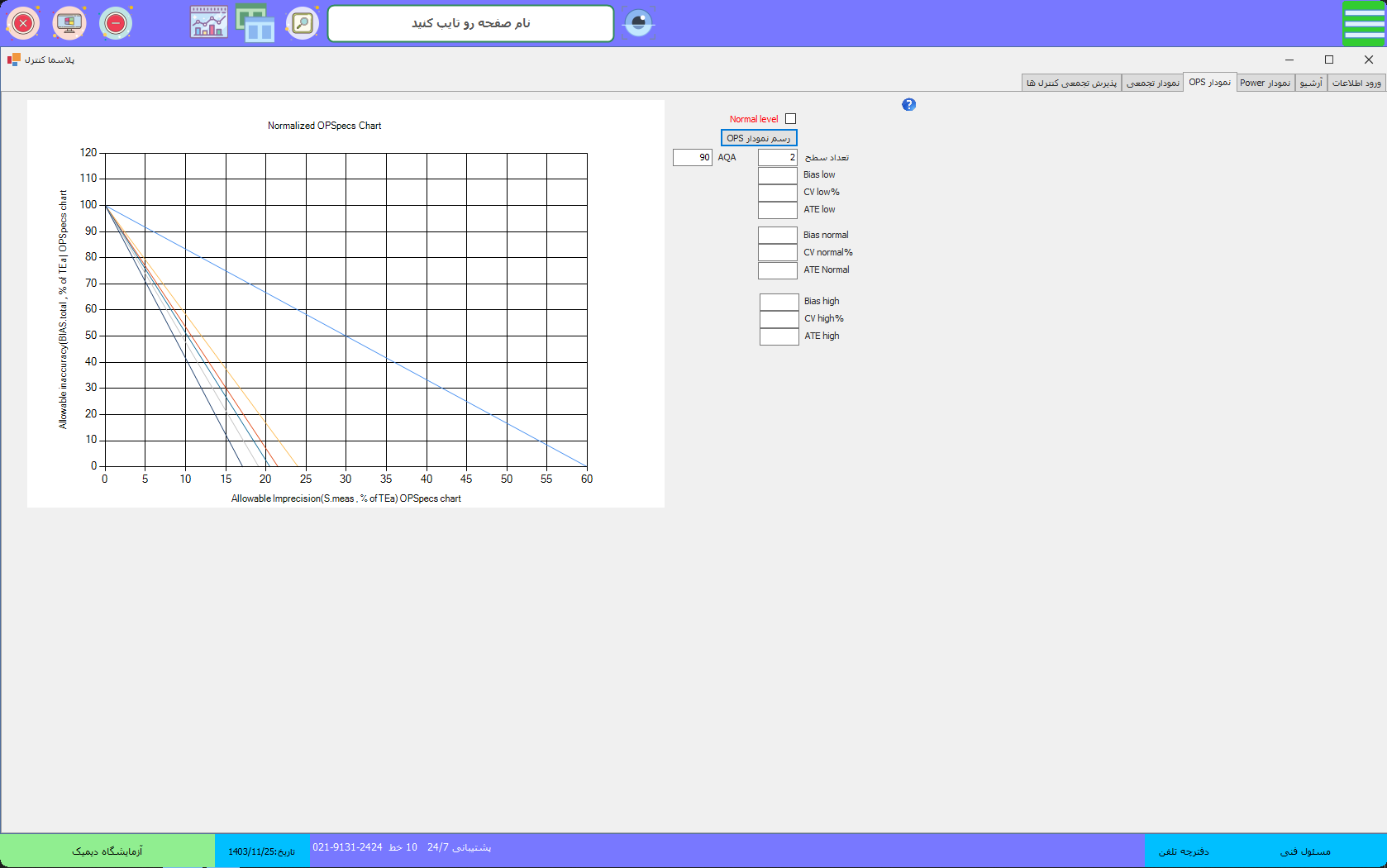 منوی جامع کنترل کیفیت این نرم افزار دارای بخش های متنوع جهت دردسترس بودن و کاربر پسند بودن طراحی شده است . در بخش کنترل کیفیت روزانه بخش ها، شما میتوانید عیار سیگما ، مقایسه خطای مجاز آزمایشگاه خود و خطای مجاز قابل قبول ، مقایسه خطای کل مجاز و خطای کل مجاز قابل قبول و خطای سیستماتیک و تصادفی سنجش های خود را محاسبه و مشاهده کنید.