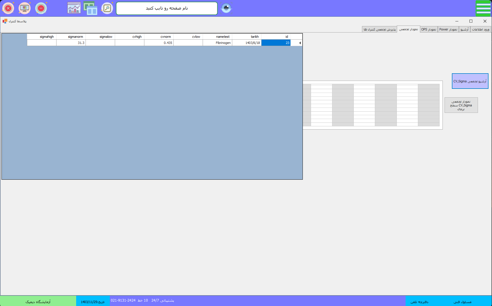 در پارت دوم آموزش ما کنترل کیفیت روزانه در بخش های هماتولوژی ، بیوشیمی، هورمون و انعقاد را خواهیم داشت. کنترل کیفیت روزانه شامل خون کنترل هماتولوژی، سرم کنترل بیوشیمی، سرم کنترل هورمون و انعقاد پلاسما کنترل می باشد. از صفحه ی سرم کنترل بیوشیمی وارد شده و روی ایجاد صفحه ی جدید کلیک میکنیم. نام دستگاه ، نام آزمایش، انتخاب سطح کنترل ، بیست داده ی اول و نام ویال را وارد میکنیم. در مرحله ی بعد اطلاعات سطح نرمال را از داخل بروشور کیت وارد میکنیم. لطفا اطلاعات تاریخ انقضا، لات نامبر، میانگین، mini norm ، max norm را وارد میکنیم و در نهایت نرم فزار میزان SD را برای ما محاسبه خواهد کرد. در نهایت اطلاعات خود را ذخیره خواهیم کرد. به منظور رفرش شدن صفحه ، صفحه را یه بار بسته و مجددا باز میکنیم . از فیلتر نام دستگاه ، دستگاه مربوطه را انتخاب میکنیم و از فیلتر نام تست، تست مربوطه را انتخاب میکنیم. بیست دیتای اول خود را در سمت چپ صفحه وارد میکنیم . بعد از پایان اطلاعات وارد شده ، اطلاعات آزمایشگاه شامل مینگین، SD ، CV آزمایشگاه و CV مجاز تست ، Bias، سیگما و دیگر اطلاعات قابل مشاهده خواهد بود. شما در صفحه آرشیو، اطلاعات بایگانی شده ی خود را میتوانید مشاهده کنید. اطلاعاتی که دارای خطا هستند از این قسمت قابلیت اصلاح را دارند. نمودارهای مختلفی مانند power ، ops و تجمعی نیز برای شما رسم خواهد شد. شما به قبلیت هایی مانند تایید مسیول فنی، چاپ صفحات، حذف صفحه ، تصحیح صفحه نیز دسترسی خواهید داشت.