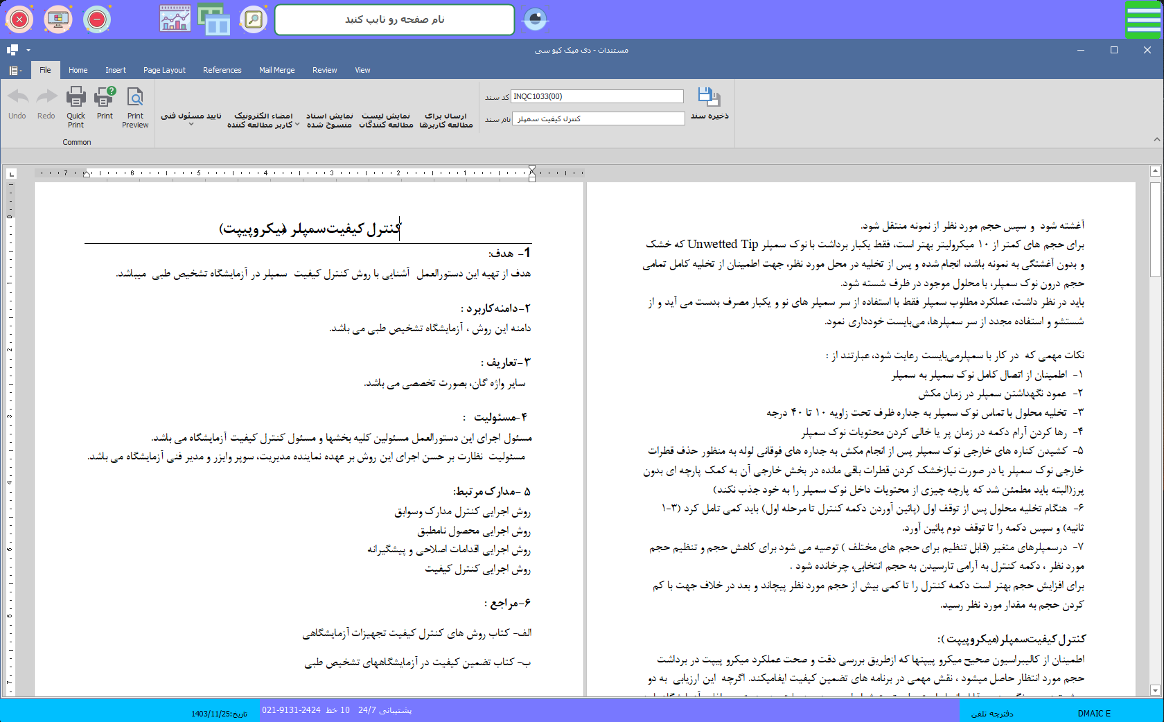 - مکان دسترسی : منو مدیریت اسناد => تضمین کیفیت