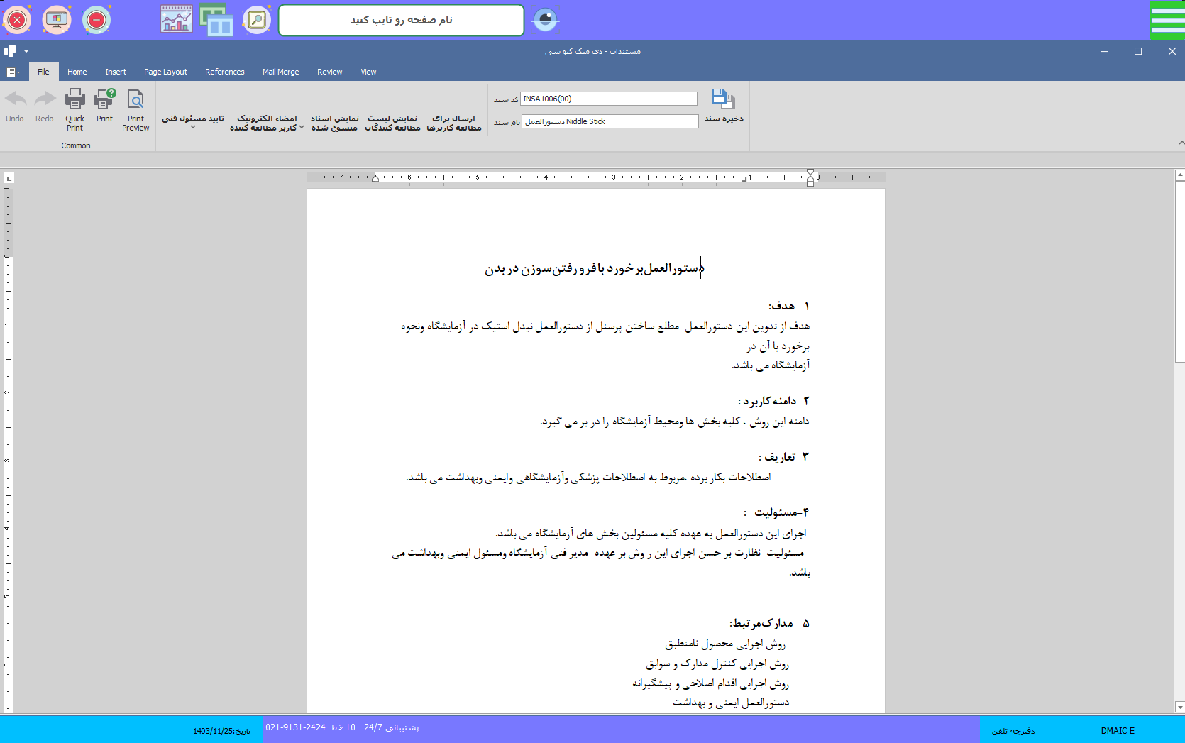 - مکان دسترسی : منو مدیریت اسناد => ایمنی و بهداشت