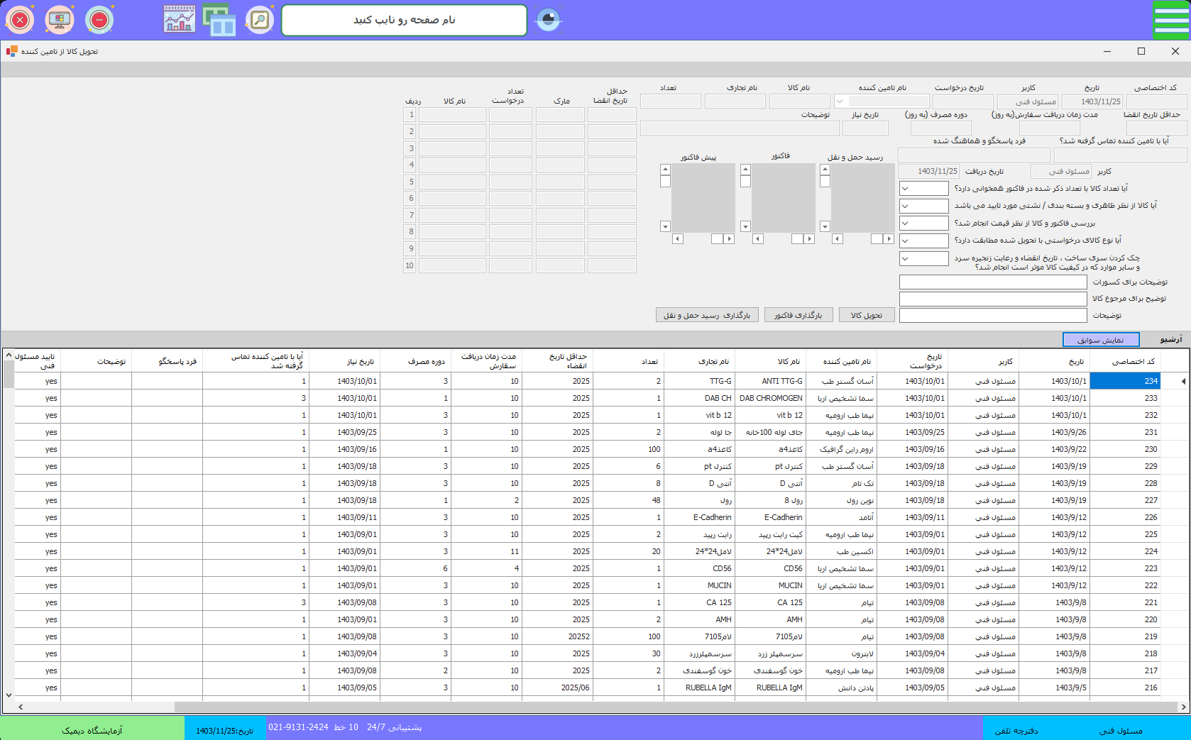 - مکان دسترسی : منو مدیریت اسناد => تحویل کالا از تامین کنندگان